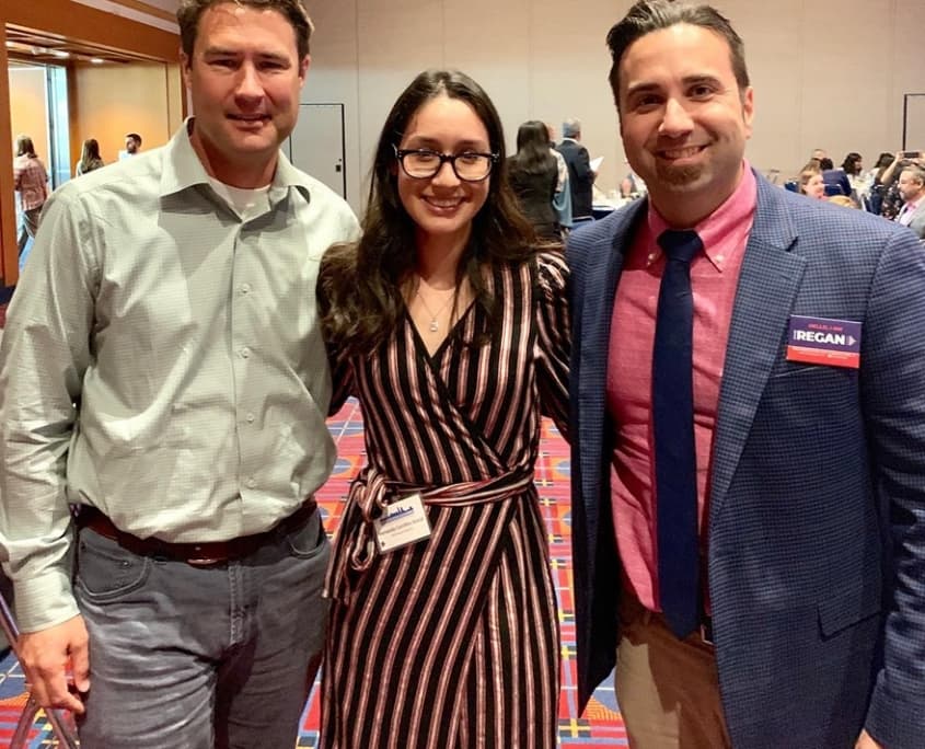 - L to R: David Regan on behalf of ELYON International, Inc.; Fernanda Cerrillos Anzar, recipient of 2019 Hispanic Metropolitan Chamber Scholarship Award; and Ozzie Gonzalez of Balfour Beatty.
