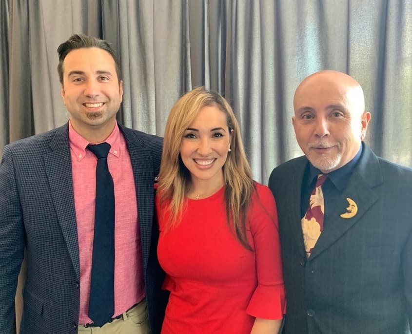 - L to R: David Regan for ELYON International, Inc., Claudia Cardenas of Hispanic Metropolitan Chamber, and Raphael Nazario for ELYON International, Inc.
