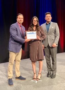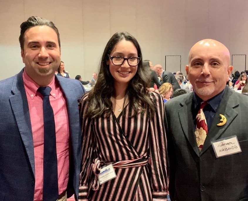 - L to R: David Regan for ELYON International, Inc.; Fernanda Cerrillos Anzar, recipient of 2019 Hispanic Metropolitan Chamber Scholarship Award; and Raphael Nazario for ELYON International, Inc.